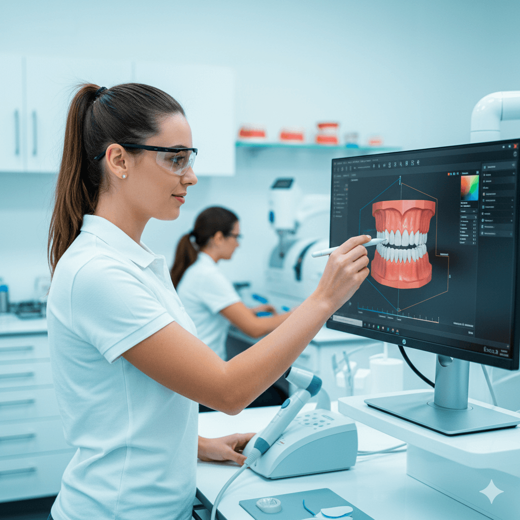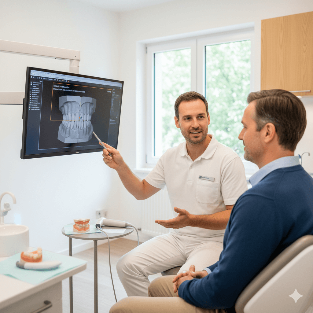 Die Restauration wird dann als 3D-Modell auf dem ComDie Restauration wird dann als 3D-Modell auf dem Computer erstellt.
